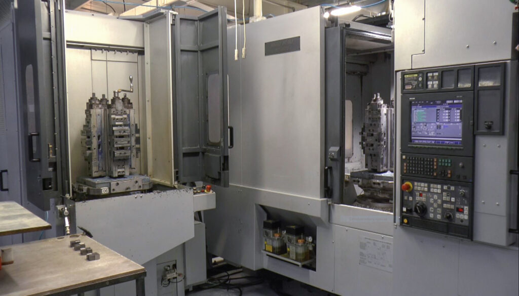 Horizontální frézovací centrum určené pro sériovou výrobu. Stroj je řízen řídícím systémem Fanuc 18i a je vybaven vysokotlakým vnitřním chlazením, dopravníkem třísek, měřící obrobkovou sondou, sondou na kontrolou zlomení nástroje a paletovým dopravníkem se šesti paletami.